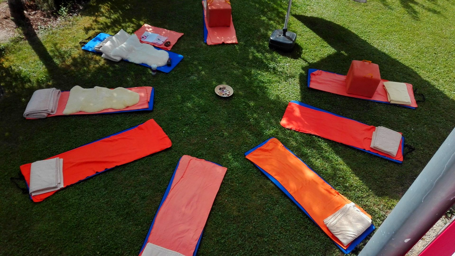 Aus hygienischen Gründen bitte ich Dich, eine eigene Yogamatte, ein Meditationskissen, eine Decke, evt. ein kleines Kopfkissen und etwas zu trinken mitzubringen.